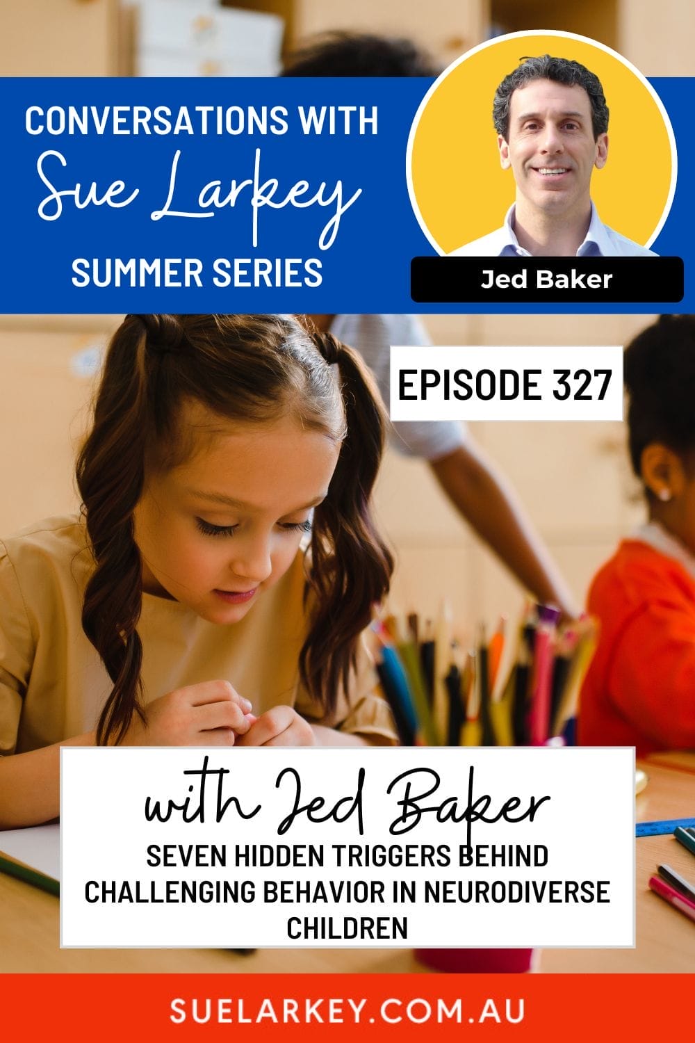 Conversations with Sue Larkey With Guest Jed Baker Seven Hidden Triggers Behind Challenging Behavior in Children with Autism behaviour triggers in autism************************************** Join me for an upcoming Workshop: Sue Larkey Workshops Can't make these Workshop dates? Join me for a self-paced on-demand course: Sue Larkey On-Demand Workshops ************************************** Discussed in this Episode: ✅ The Thursday Morning Detective Work: Track patterns in challenging behavior by day/time. The example of a student who had meltdowns every Thursday morning traced back to swimming lessons on Wednesday night causing late bedtime, poor sleep, and skipped breakfast. ✅ The Two-Question Anxiety Strategy: When a child expresses fear, ask: "What is the probability of this bad thing happening?" and "Am I overestimating the severity?" Use real data to help children think through worries logically. ✅ Self-Recording for Routine Reminders: Have students record audio messages...