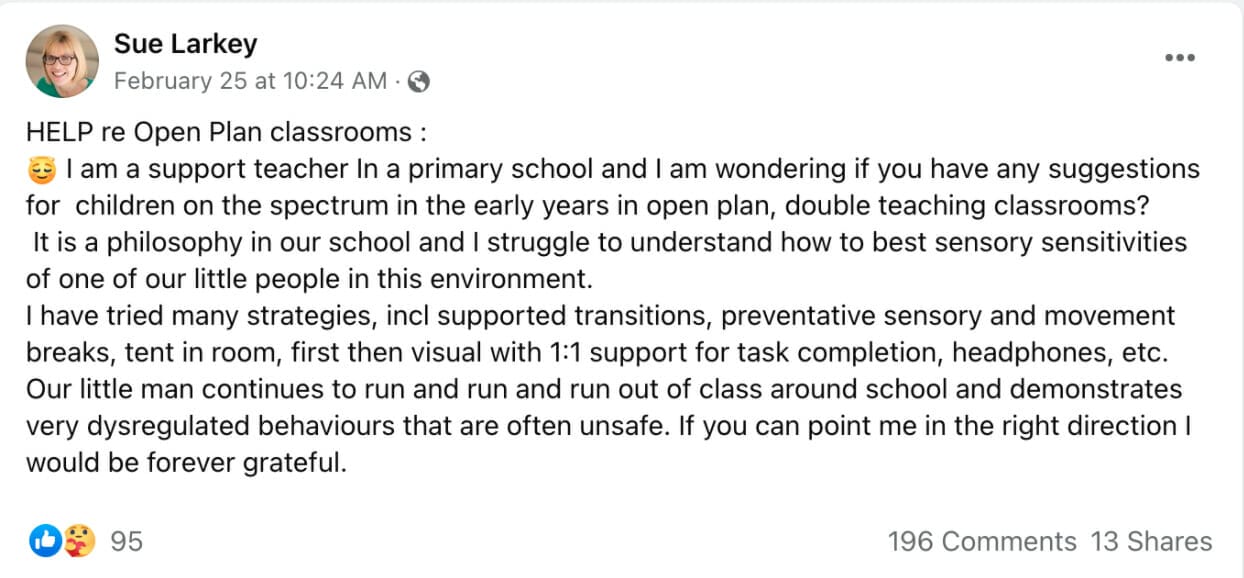 ✅ How to support children on the spectrum in the early years in open plan, double teaching classrooms?
