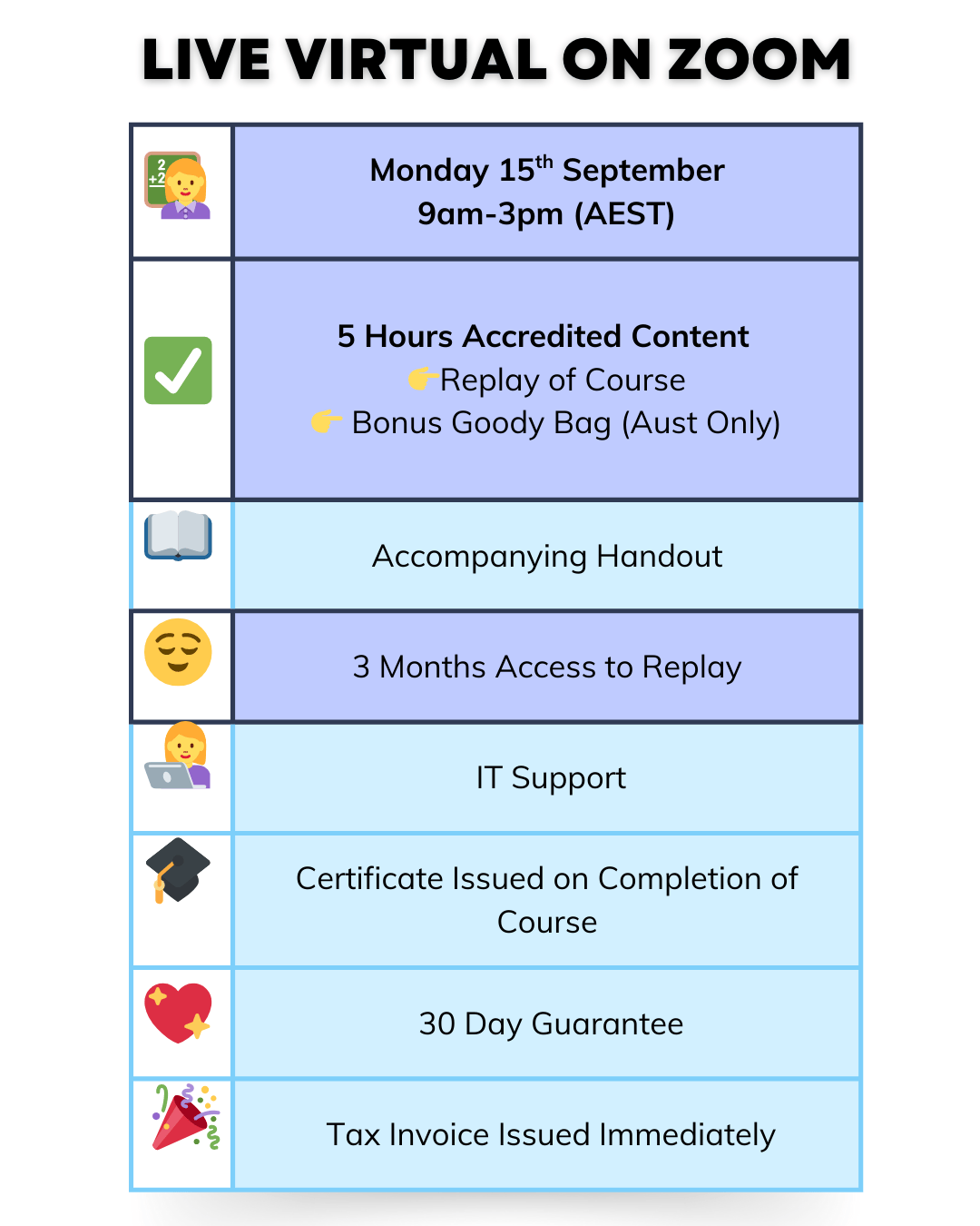 Face to Face and NEW Virtual Workshop/Training via Zoom