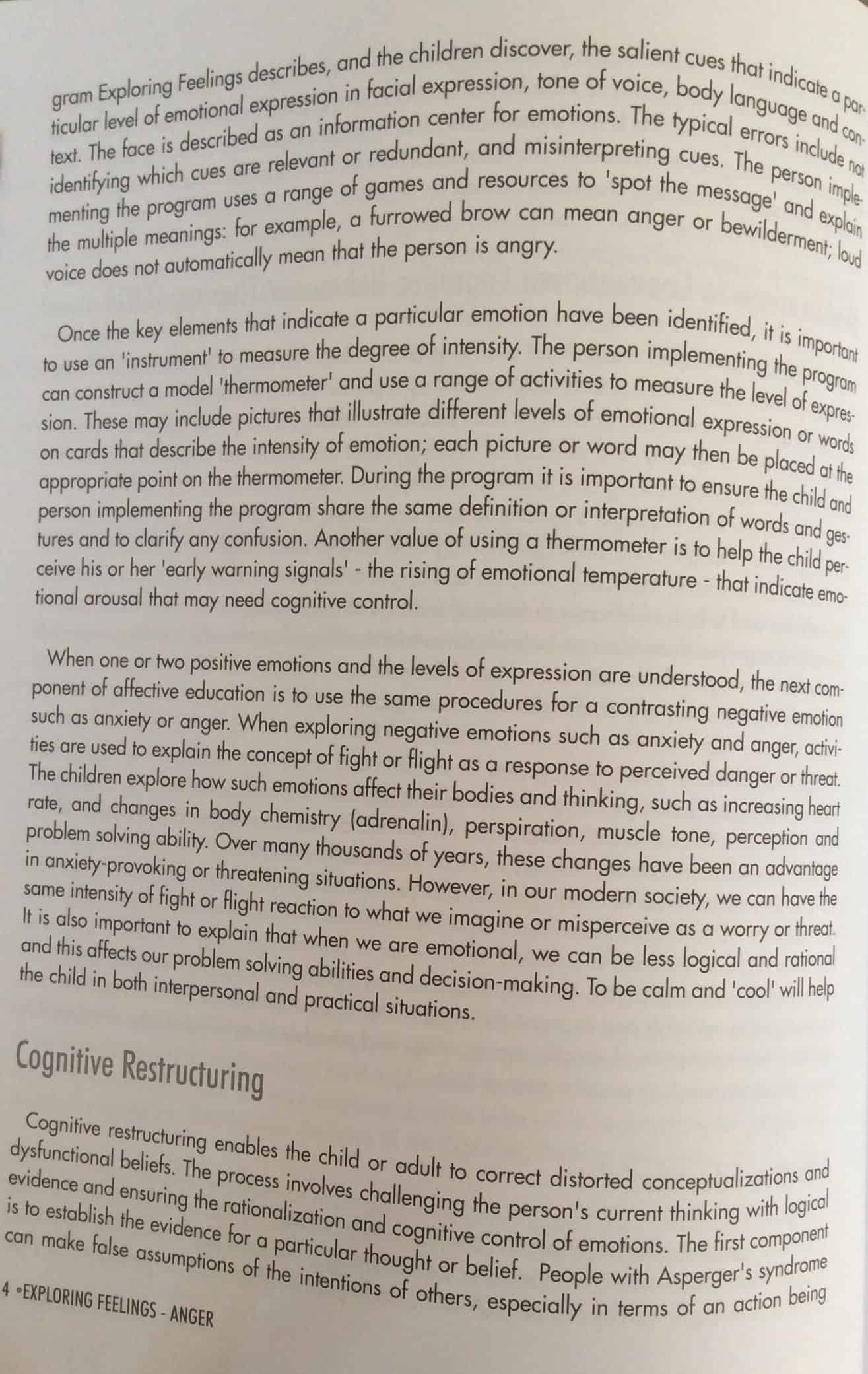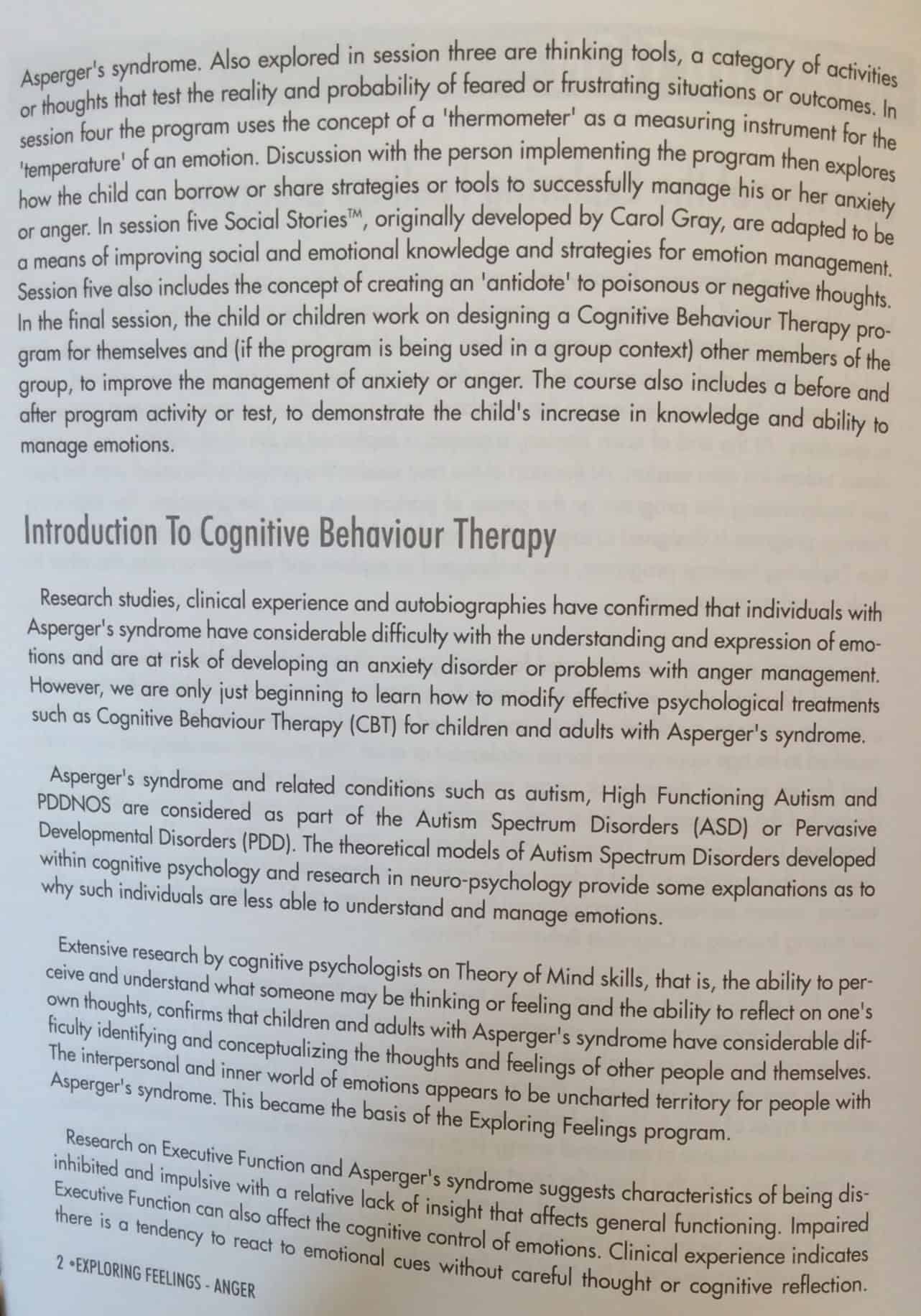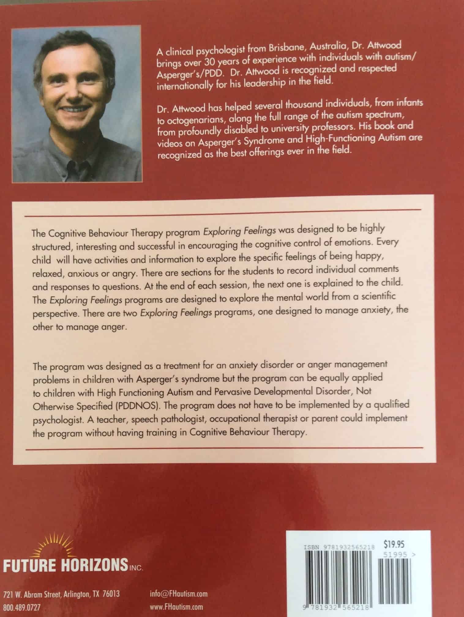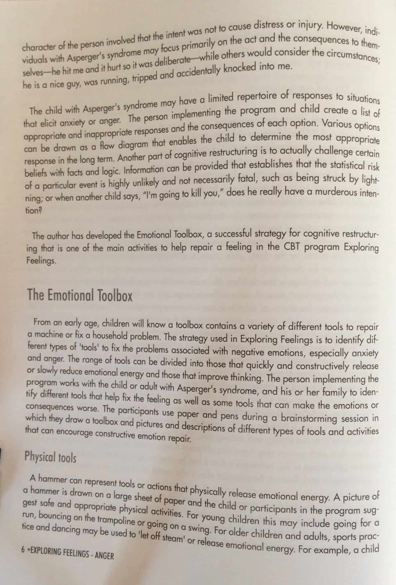 Exploring Feelings: Cognitive Behaviour Therapy to Manage Anger | by Dr Tony Attwood | code: B22 | A guide for caregivers with a workbook portion that asks children to identify situations that trigger anger and find appropriate responses. Many children with developmental delays, struggle to express their feelings resulting in difficulty with anger management. Listing possible responses to situations and the likely outcome allows the child to make informed decisions about which responses to choose (walking away vs. hitting).