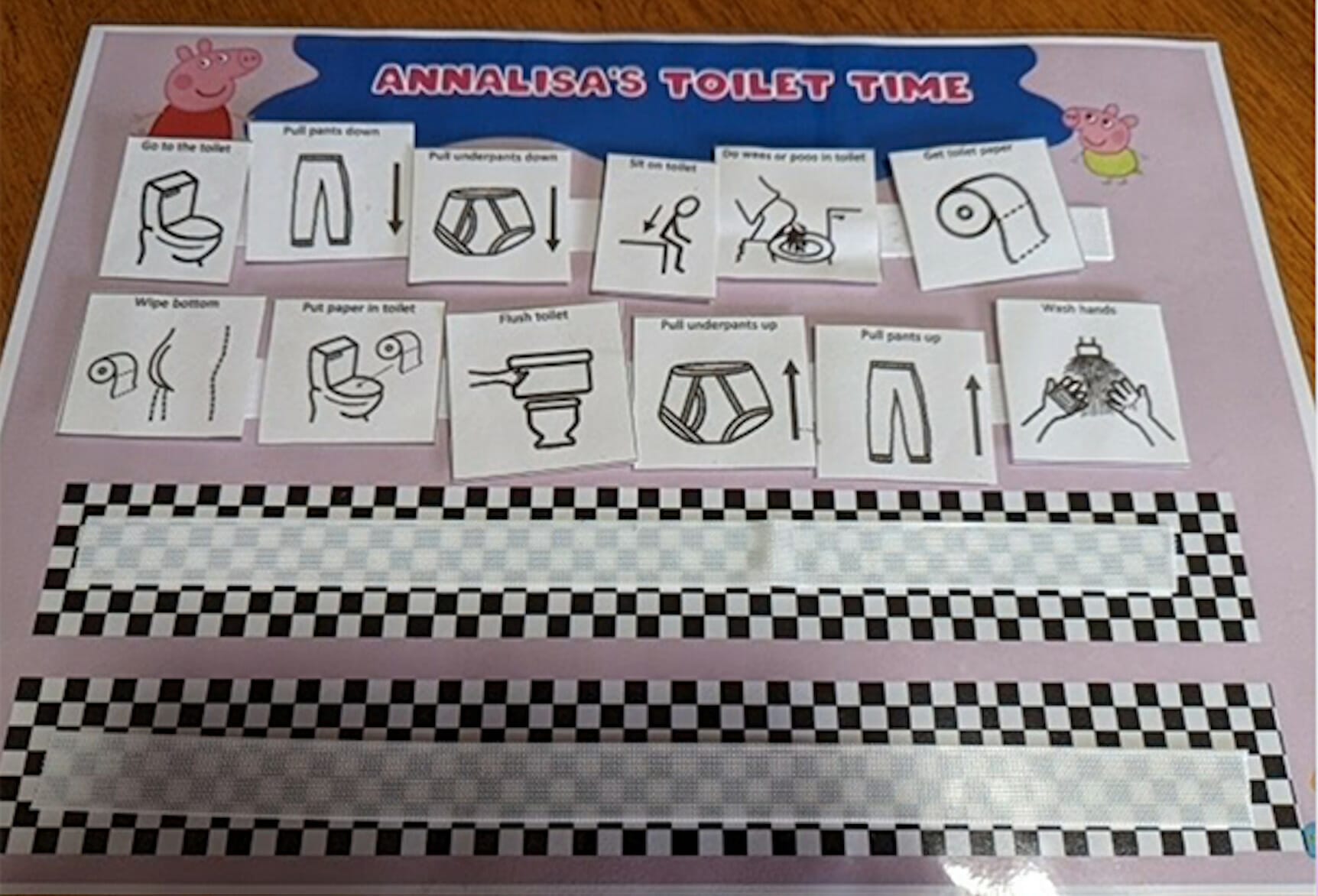 2. Visuals are very important. Make up some visuals to help the child understand the toileting process and to provide a prompt.